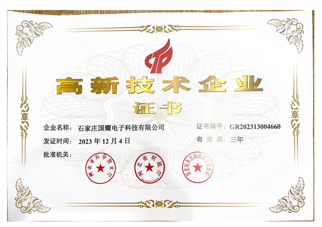 石家莊國(guó)耀電子科技有限公司成立于1998年,注冊(cè)資本1000萬元,位于石家莊市高新技術(shù)產(chǎn)業(yè)開發(fā)區(qū),是國(guó)家高新技術(shù)企業(yè)和軟件企業(yè)。 公司主要從事各類高頻開關(guān)電源、電力電子產(chǎn)品的開發(fā)與生產(chǎn),先后推出了AC/DC、DC/DC、DC/AC電源系列數(shù)百個(gè)品種,廣泛應(yīng)用于通信、軍事、電力、節(jié)能等多個(gè)領(lǐng)域。 產(chǎn)品技術(shù)居國(guó)內(nèi)先進(jìn)水平,部分居國(guó)內(nèi)先進(jìn)和國(guó)際先進(jìn)水平。